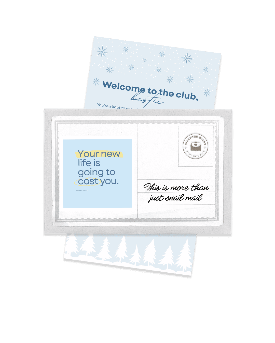 Investor’s Diary is a monthly snail mail experience crafted for wealth builders, dreamers, and those rewriting their money story. Every month, you’ll receive a physical envelope filled with real life lessons, mindset prompts, collectibles, and more all to help you reflect, reset, and grow.